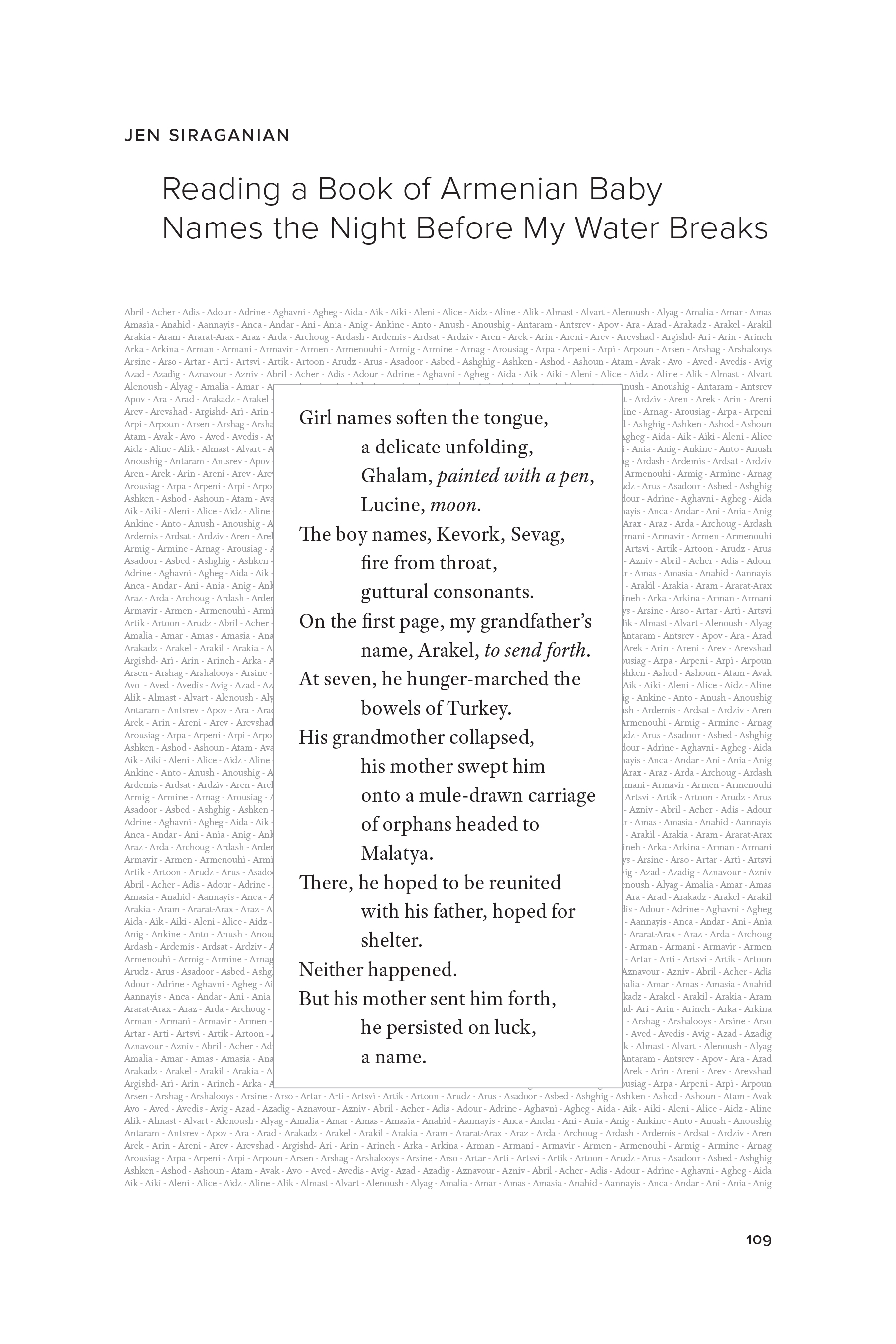 Reading a Book of Armenian Baby Names the Night Before My Water Breaks