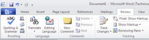 In these cases, there’s a bright red line somewhere in the margin, and if we change the settings from “Simple Markup” to “All Markup” in the track changes panel, we’re able to see the things you wrote and deleted while you had the track changes feature engaged, as well as feedback from friends, family, and workshop-mates.